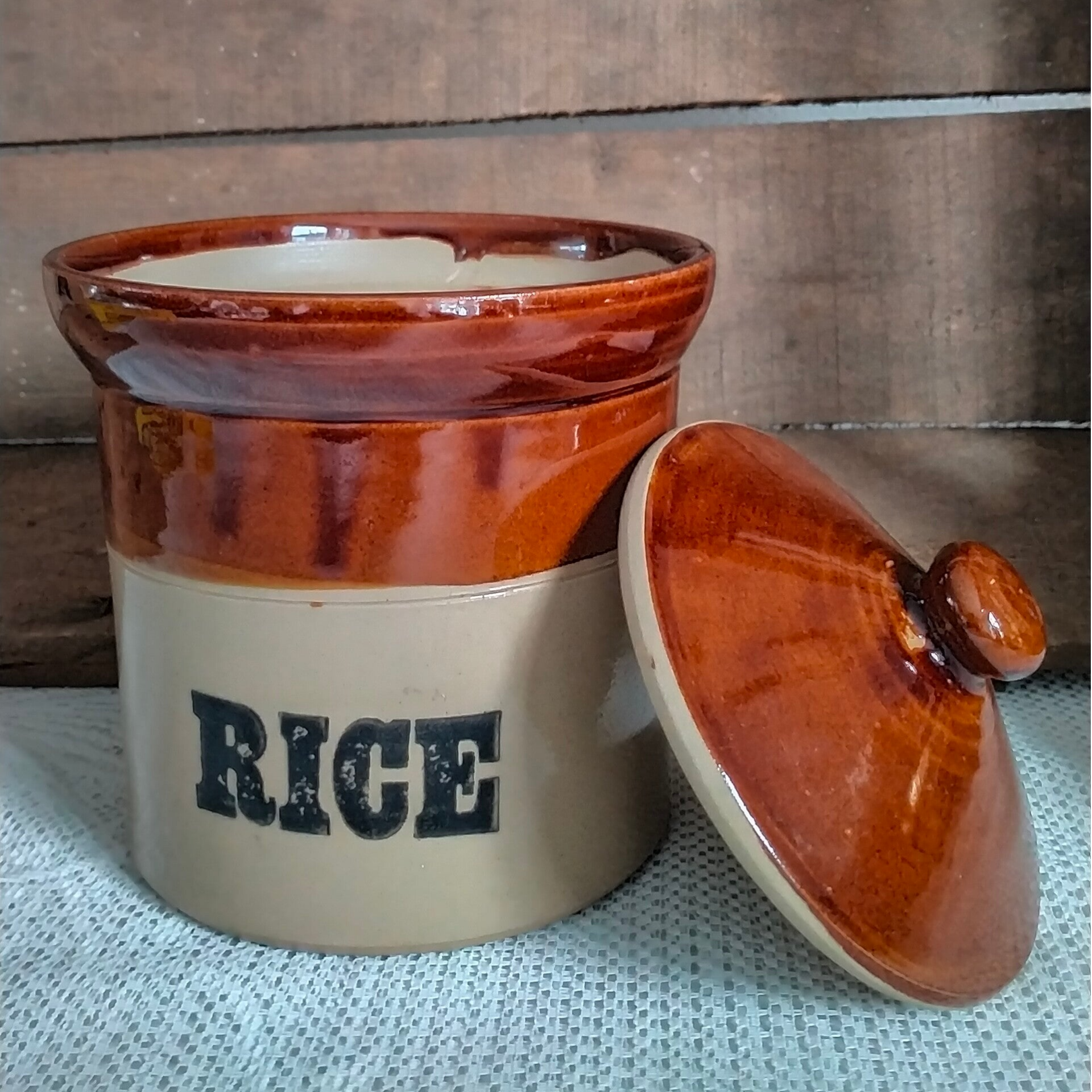 Mooie voorraadpot in bruin/zandkleur, geglazuurd keramiek.