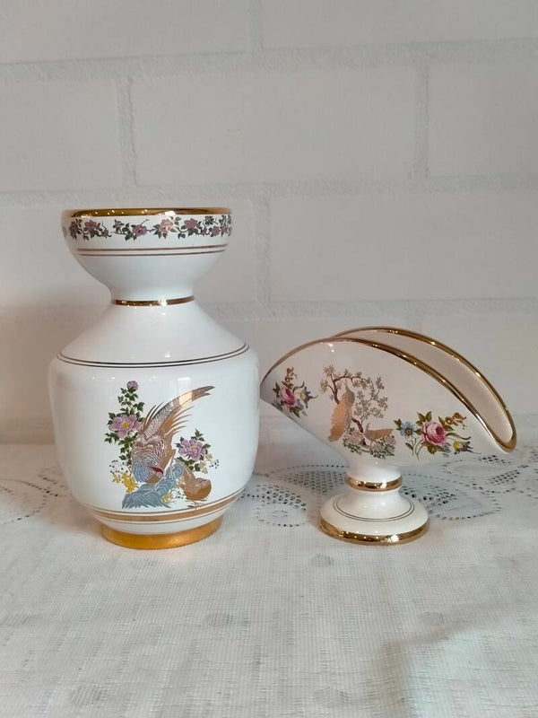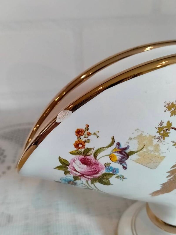 Deze heeft mooie pauwenafbeeldingen op beide kanten. Helaas aan 1 kant een klein stukje eraf op de rand.