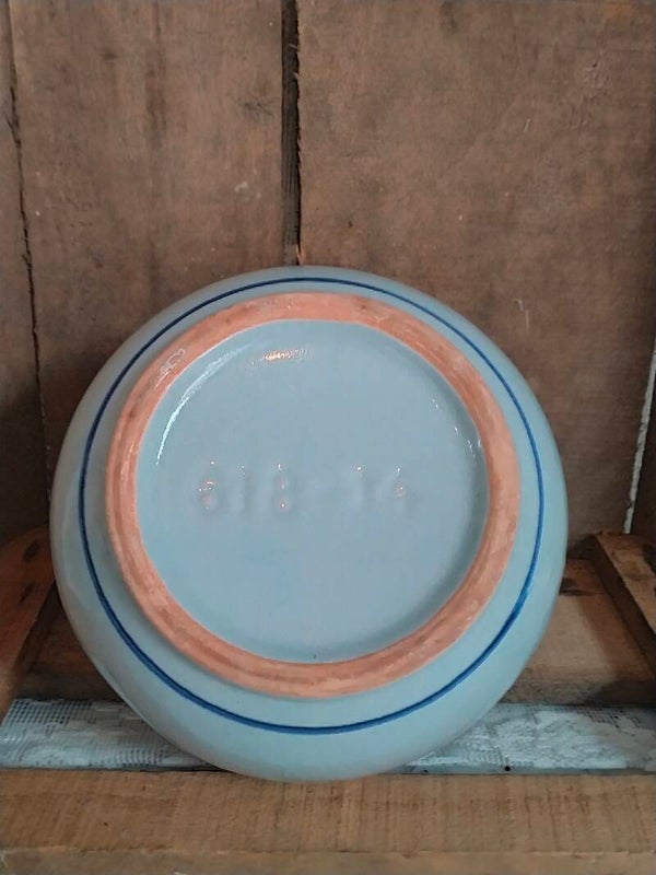 Dit bloempotje is versierd met een blauw bloemetje en is blind genummerd.