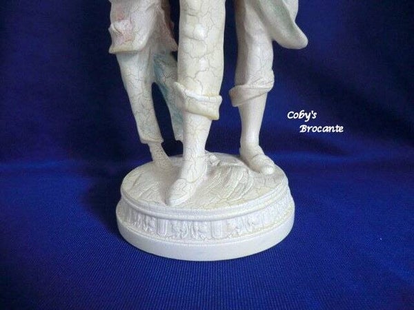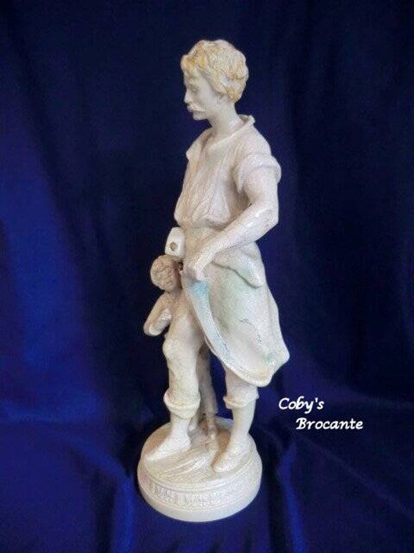 Groot brocante beeld van een boer met zijn zoon, sculptuur replica van kunstenaar Moreau. Grootte 51 cm.