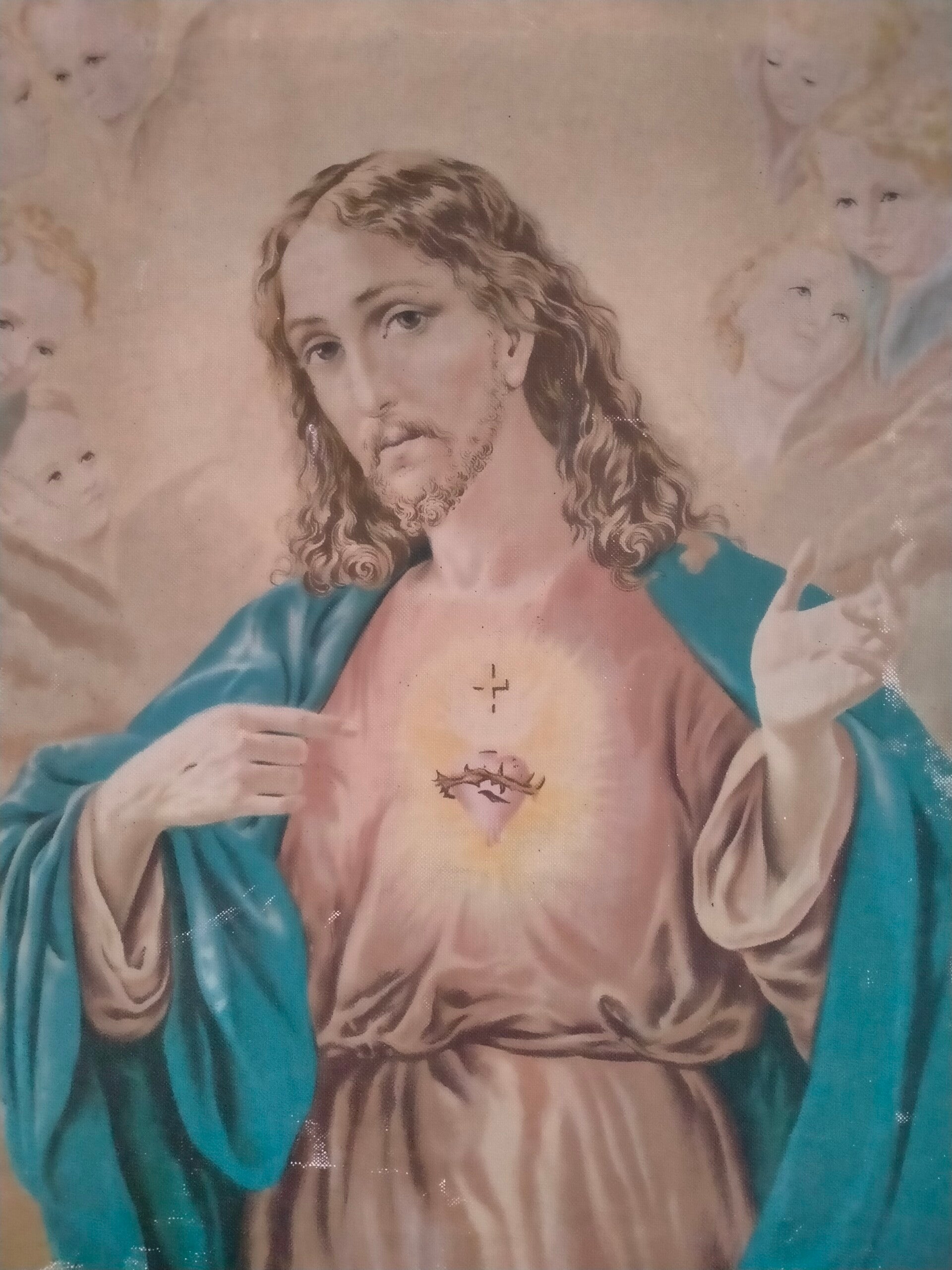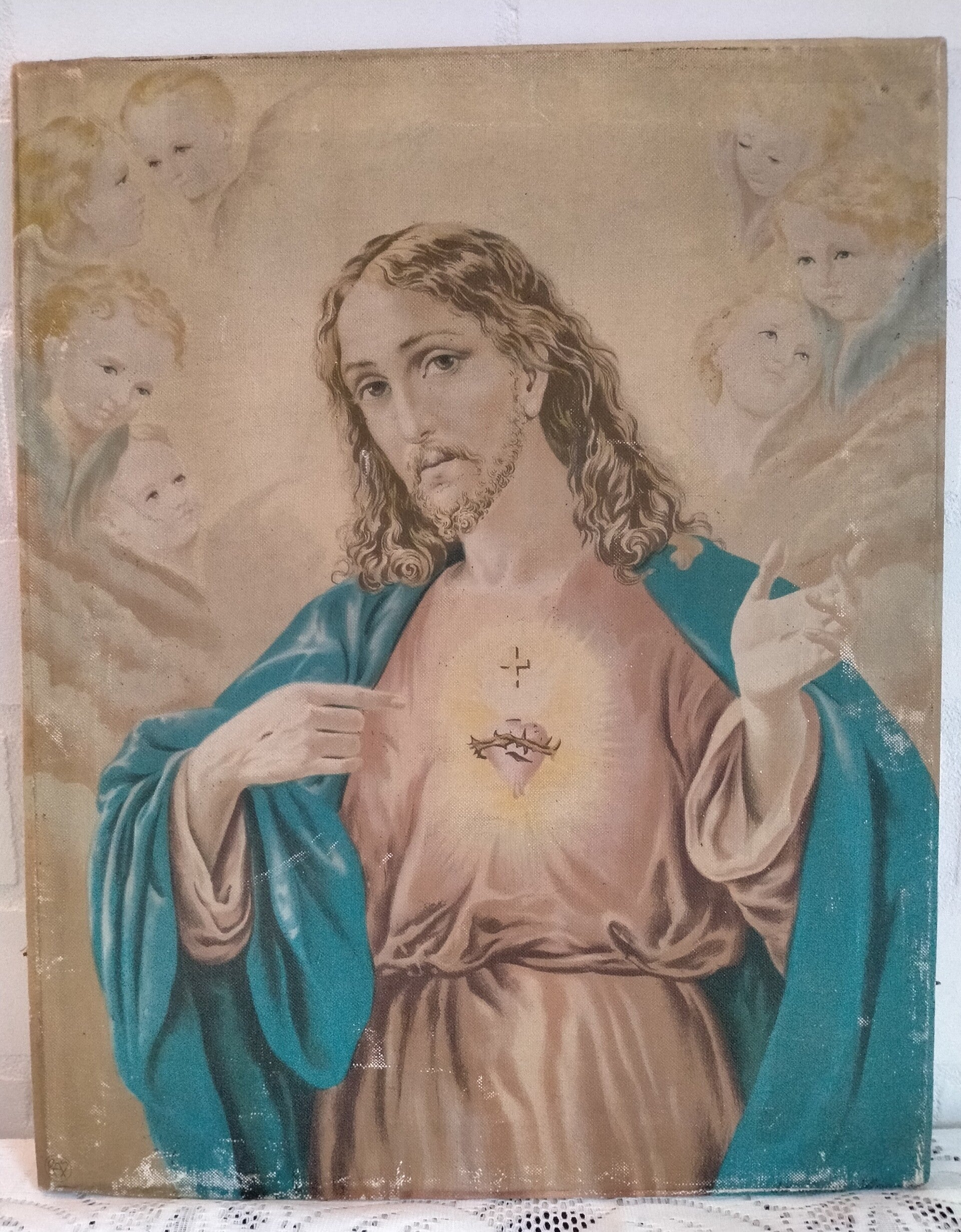 Twee mooie antieke religieuze afbeeldingen met Heilig Hart,