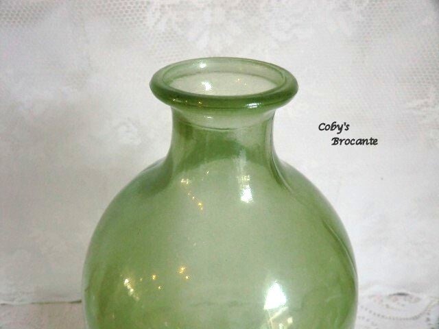 Glazen fles zachtgroen, hoogte 31,5 cm.
