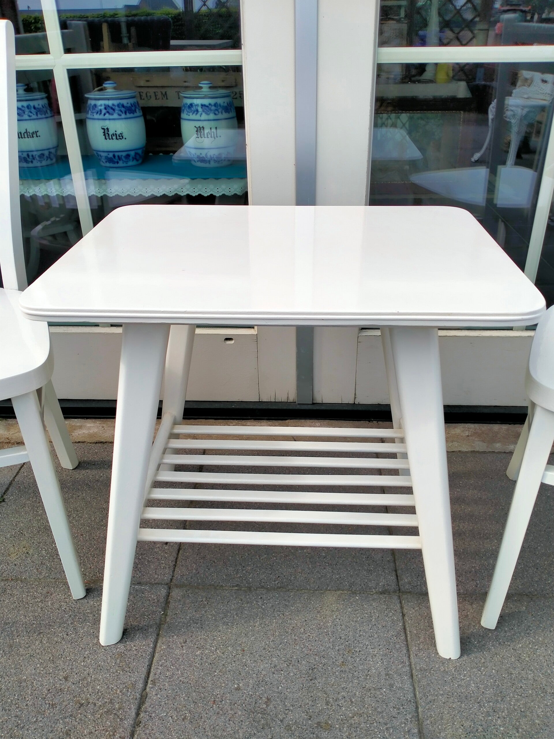 Leuk tafeltje met 2 bijbehorende stoelen in het wit.