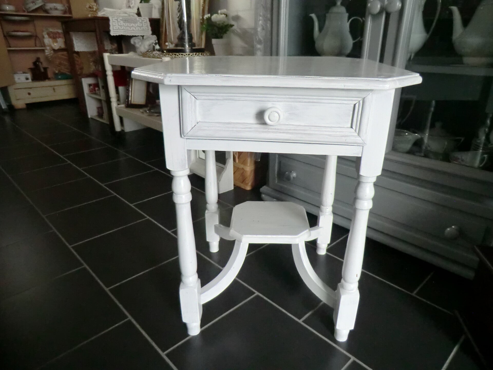 Witte bijzettafel met 8-hoekig bovenblad en een lade.