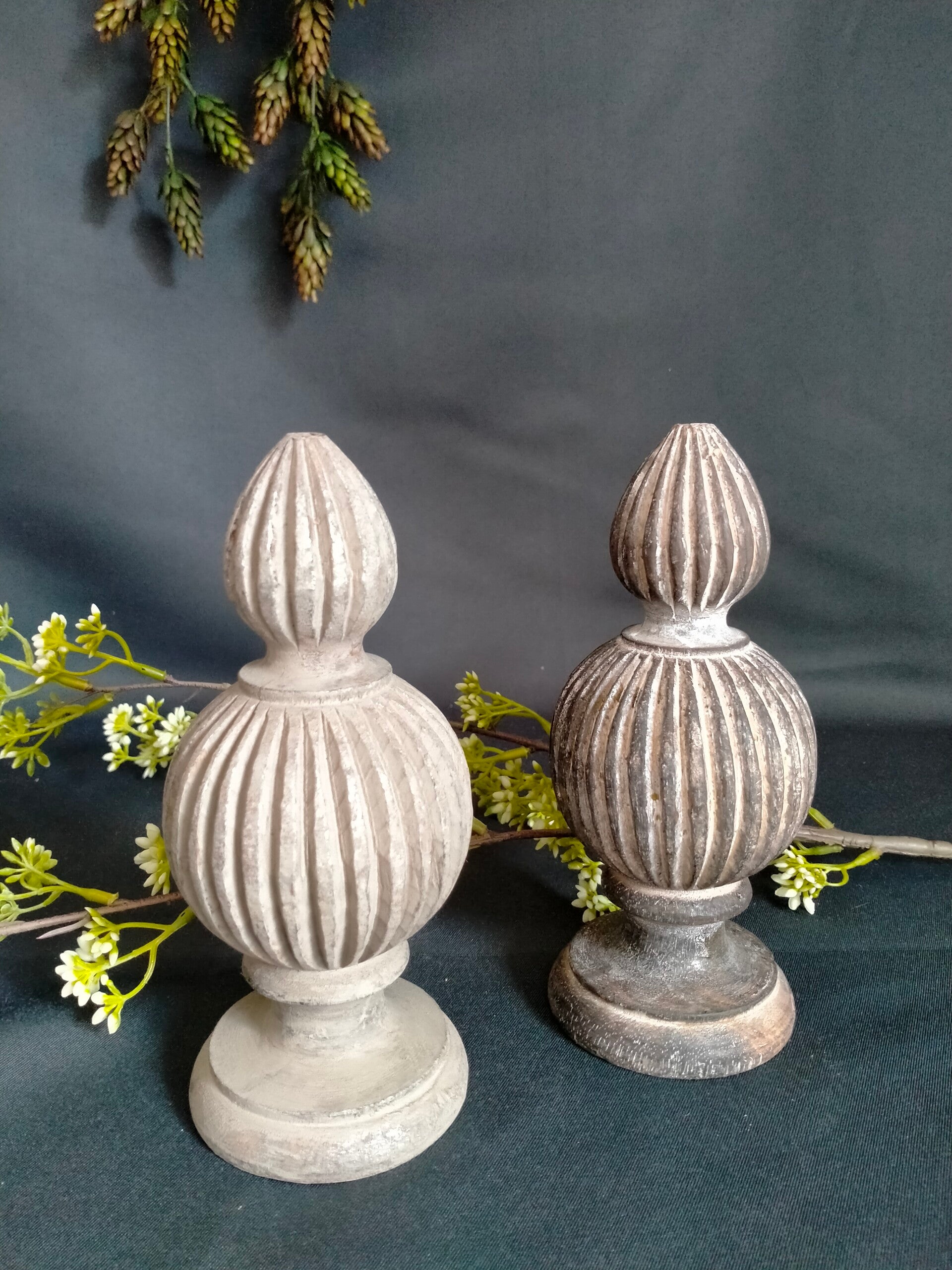 Houten pinakel in vintage grey, een mooi decoratief ornament.