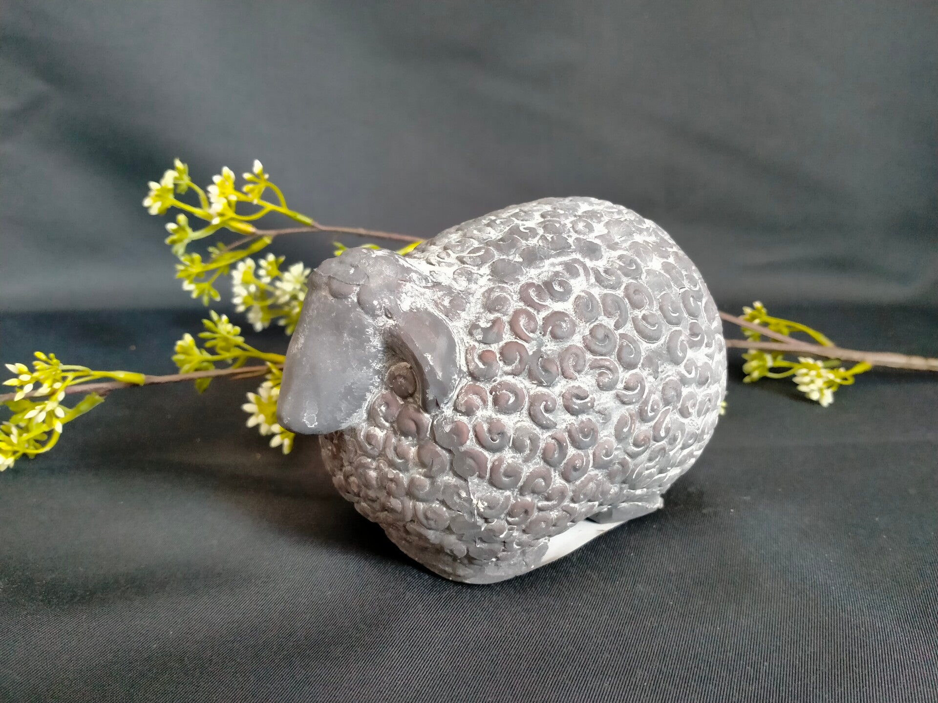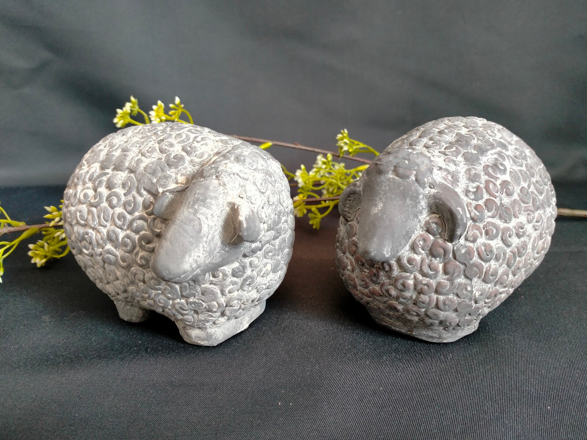 Hoogte van de schaapjes 10 cm., lengte 14 cm.