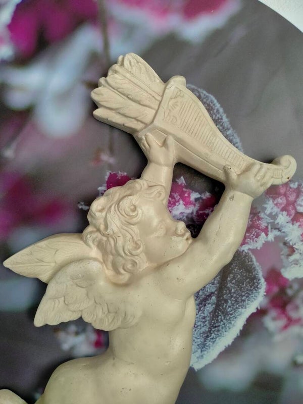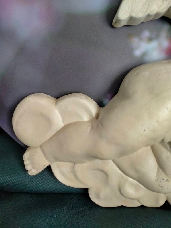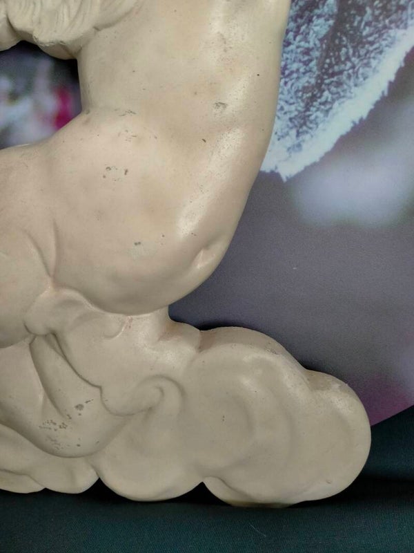 Het is een brocante stenen beeld en heeft hier en daar wat gebruikssporen.