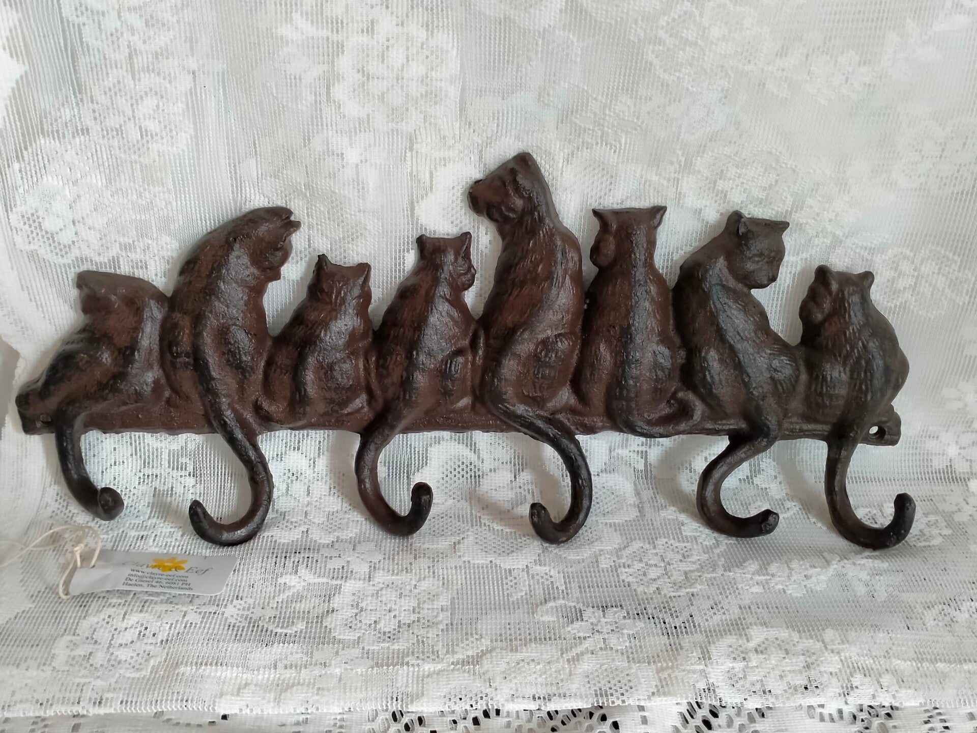 Charmante gietijzeren kattenkapstok, rustiek decor met 6 kattenhaken.