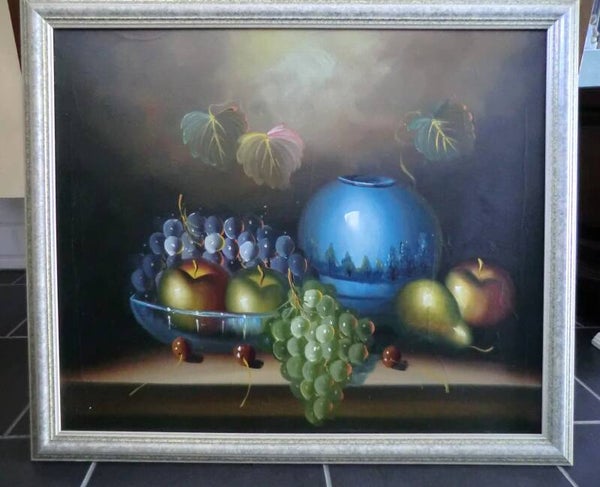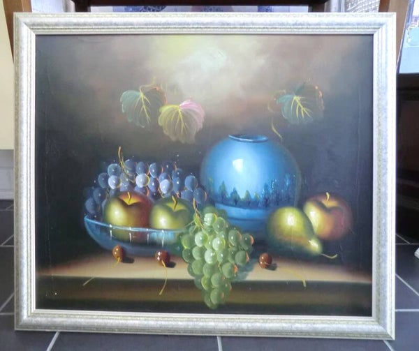 Prachtig schilderij met een stilleven van fruit, deze mooie heldere kleuren spatten van het doek af!
