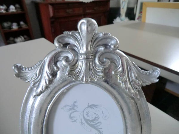 Ovalen fotolijst/ striklijst zilverkleurig.