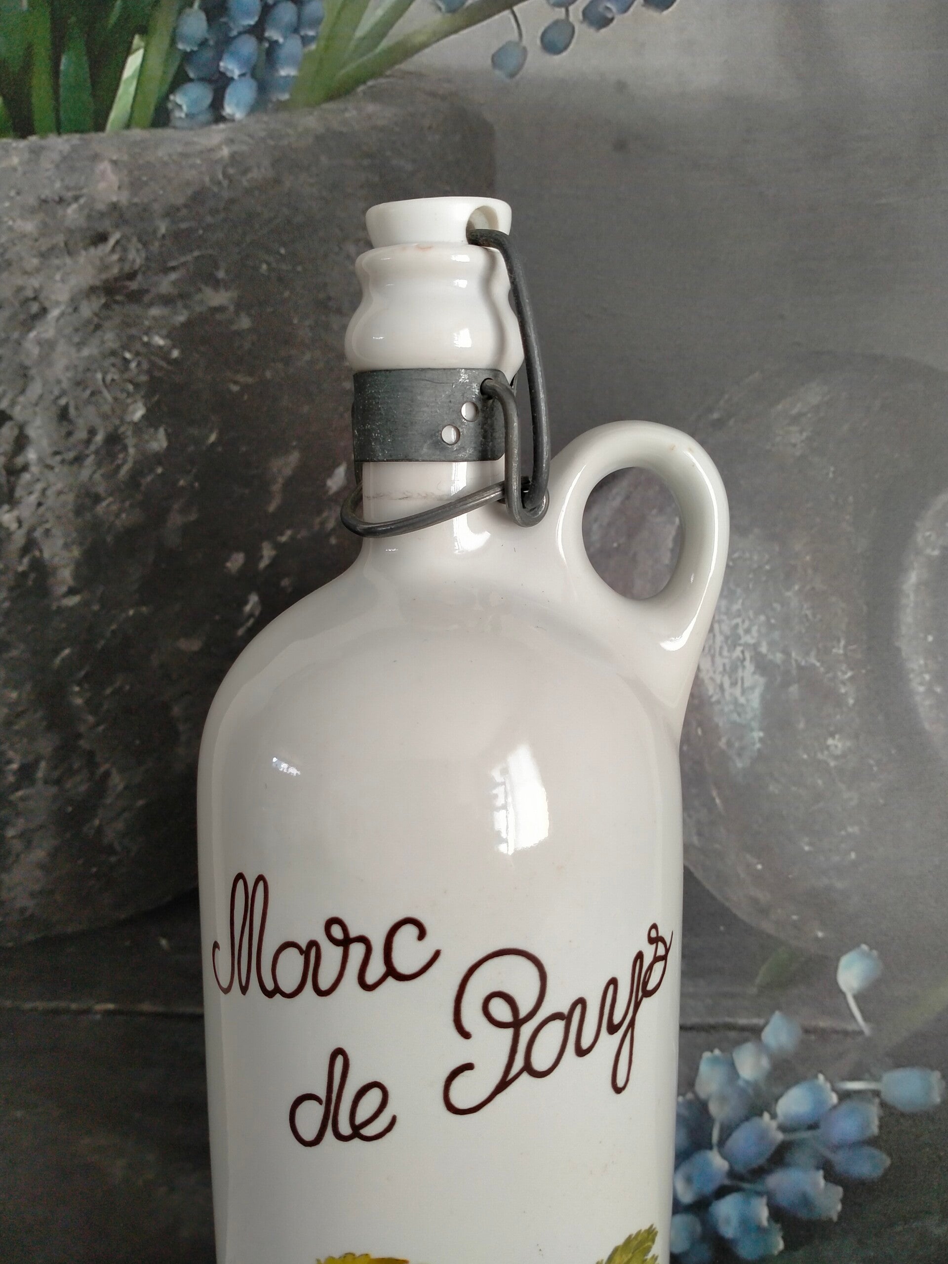 Mooie Franse porseleinen fles met fruitdecor druiven.