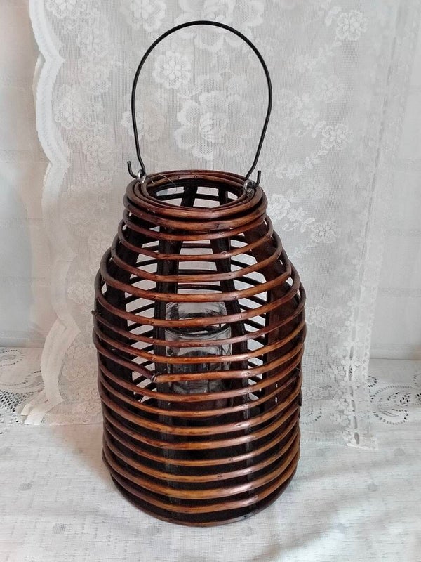 Een prachtige ronde lantaarn gemaakt van gevlochten riet.